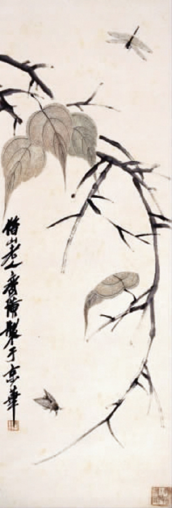 齐白石 花卉蜓蛾秋叶图 98×33.8cm 估价:150000—2000000