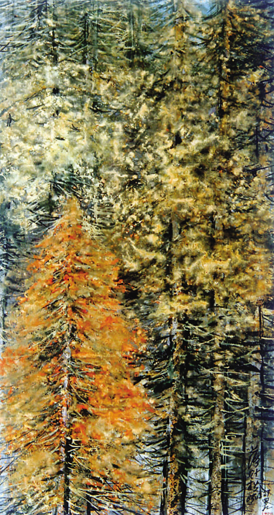 罗红 落叶松 彩墨