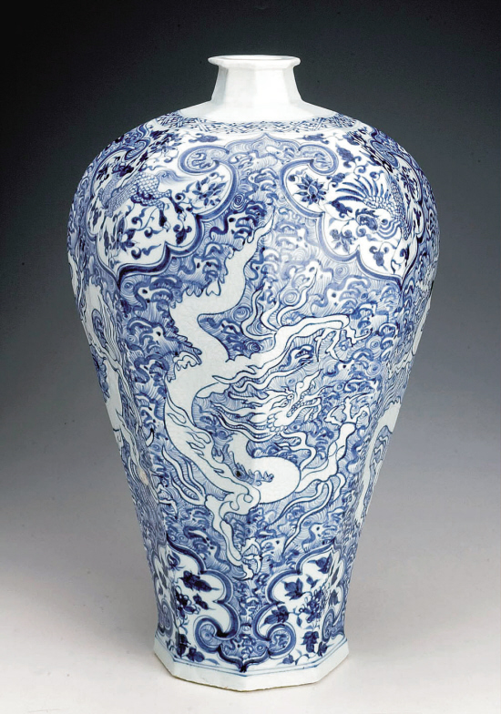 元 青花留白龙纹八角梅瓶