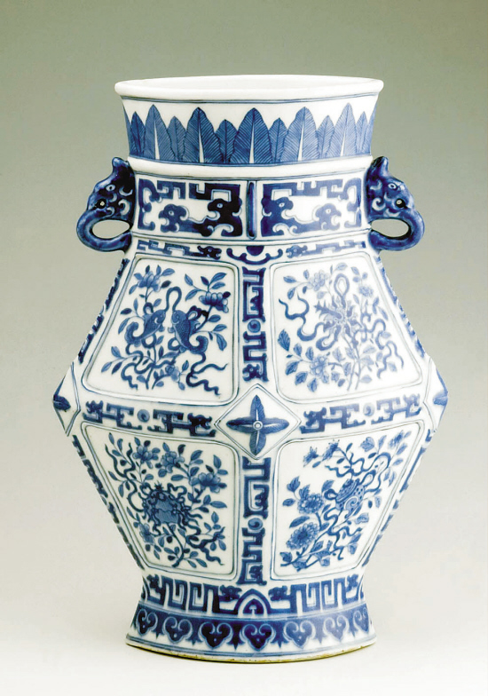 清乾隆 青花八宝纹仿青铜兽耳尊