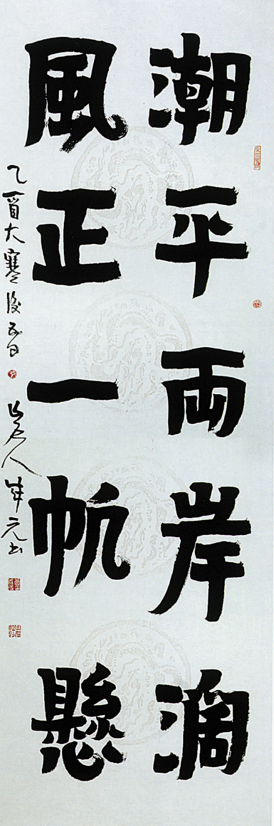 康成元 (中国)第十届全国政协委员。原海军副政委。中将军衔。中国书法家协会理事。楷书·条幅 纸本 潮平两岸阔,风正一帆悬。
