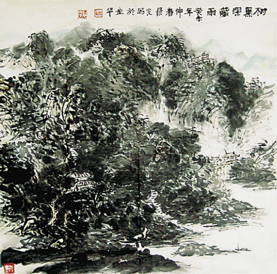 施晨光 金华市美协会员 树黑深藏雨 四尺对开