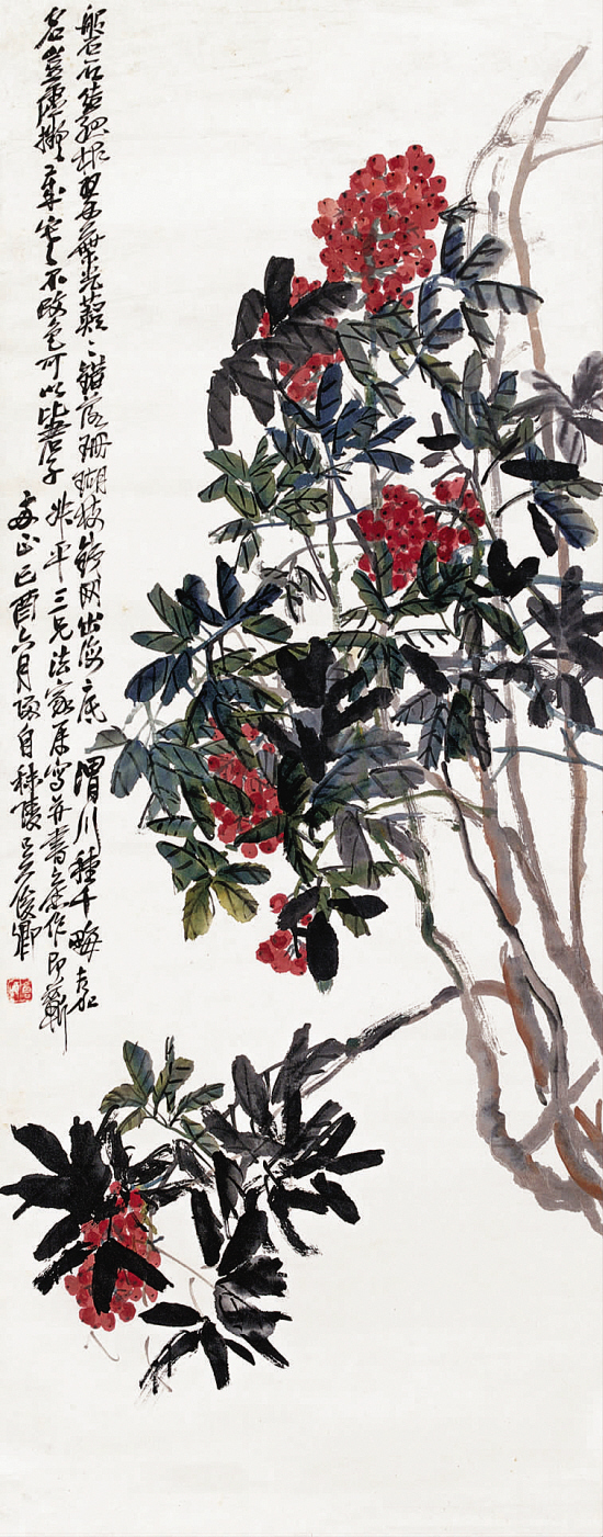 吴昌硕 天竺图 133×52.5cm 著录:《中国近现代名家画集-吴昌硕》P69