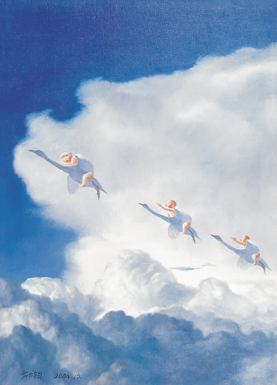 方力钧 飞 70×50cm 出版:《首届中国当代艺术年鉴展》第124页。湖南美术出版社2005年12月