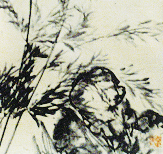 赵启让 风中竹石图(双管齐下绘画) 50×50cm