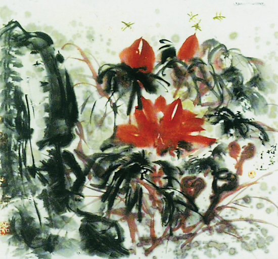 赵启让 荷花蜻蜓图(双管齐下绘画) 60×60cm