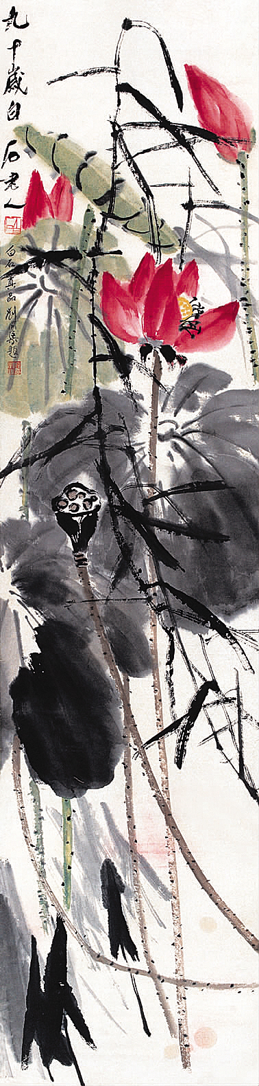 齐白石 荷塘野趣 147×36cm