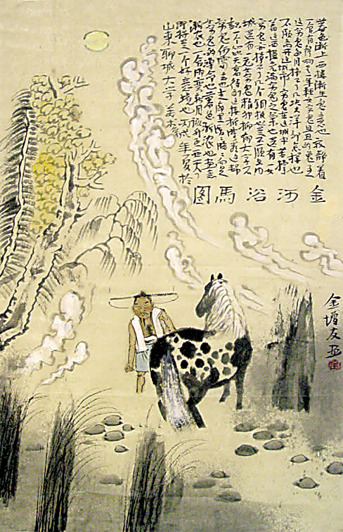 金增友 中国美协会员、聊城大学 艺术学院美术系副教授 金河浴马图 78×48cm