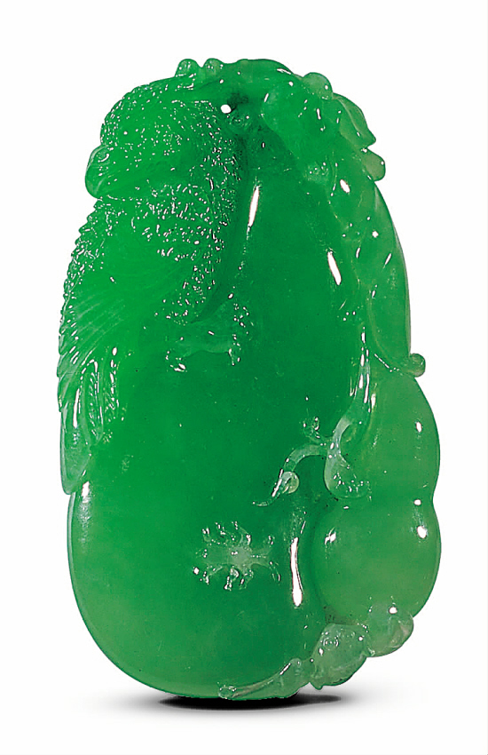 466 “福禄寿喜”翡翠挂件 色正阳艳满绿,种质细腻透润,品相饱满厚实,构思雕刻精巧。可为收藏佩戴之上品。说明:附质检证书 证书号:680378
