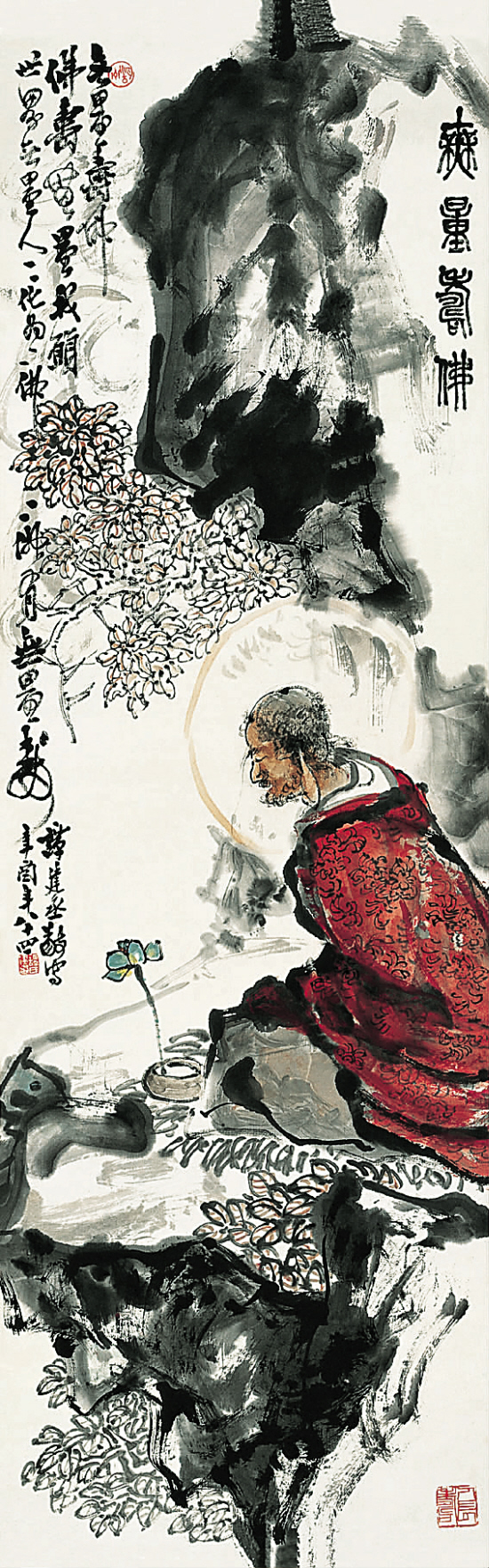 252 谭建丞 无量寿佛 设色纸本 立轴 104×34cm