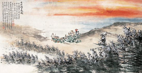 崇明坝上晨曦 1961年作 69×132cm