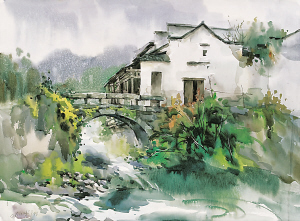 李荣华 山村 水彩