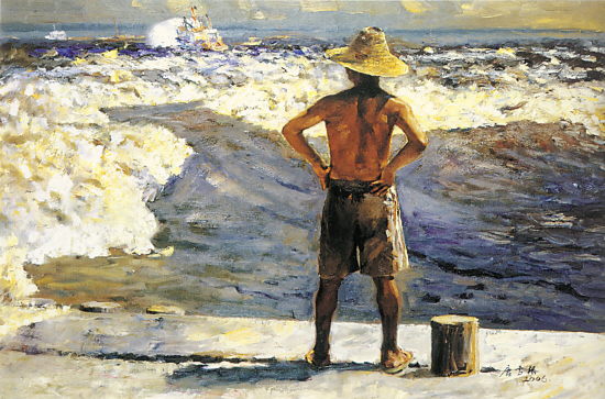 唐雪根 观潮系列之三·农民观潮 100×150cm 2006年