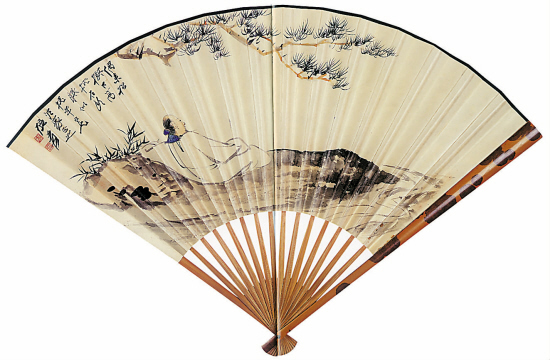319 张大千 松下高士 设色纸本 成扇 18×47cm 估价:150000-200000