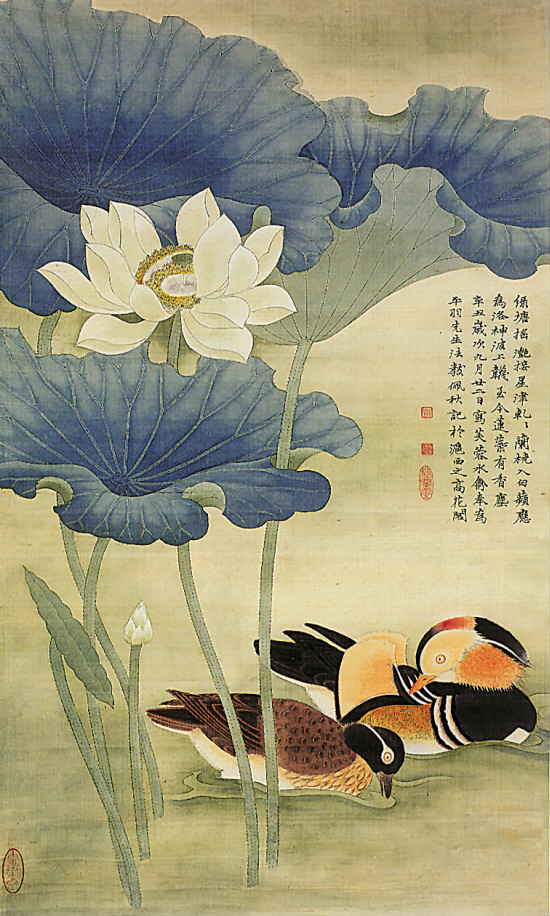 721 陈佩秋 芙蕖鸳鸯图 设色绢本 立轴 85.5×51cm