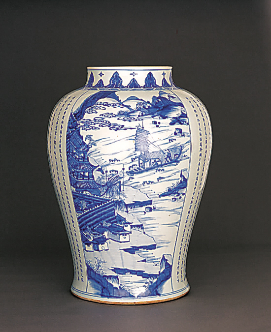 清康熙 青花四开光滕王阁序并诗山水人物诗文大将军罐 高:66cm