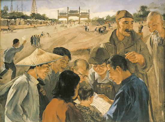 吴作人 解放南京号外 布面 油彩 1949年