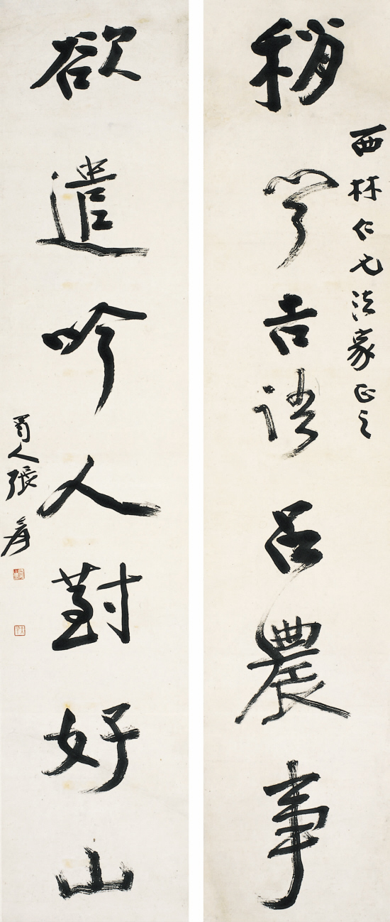 张大千 书法对联 墨色纸本 立轴 128×26cm×2