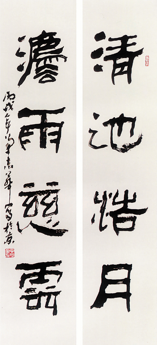 单志华 清池浩月 法雨慈云 135×35cm