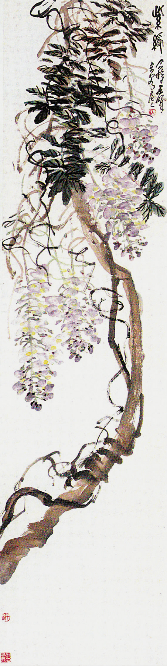 194 王个簃 紫藤 设色纸本 立轴 135×34cm 估价:15000
