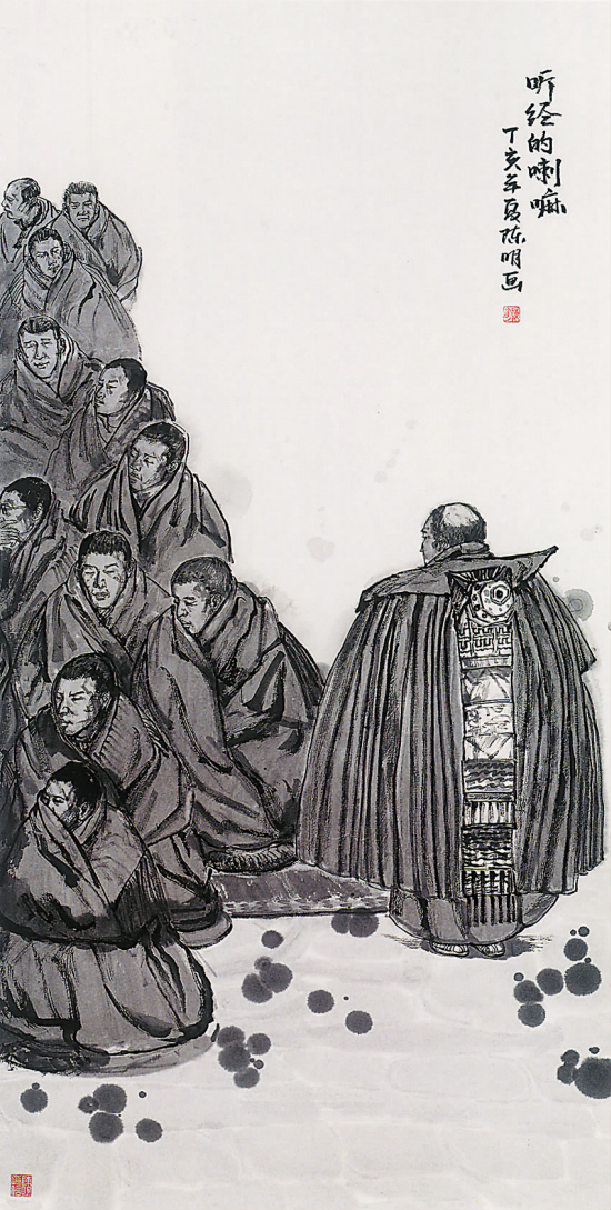 陈明 听经的喇嘛 136×68cm 2007年