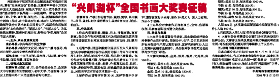 自本启事公布之日起至2008年5月31日止(以当地邮戳为准)。作品及参赛费请挂号邮寄:黑龙江省鸡西市书画院(鸡西市文化局一楼)张日安 王官平(收),邮政编码158100,信封上注明“兴凯湖杯”字样, 咨询电话:13946866660 13359957980