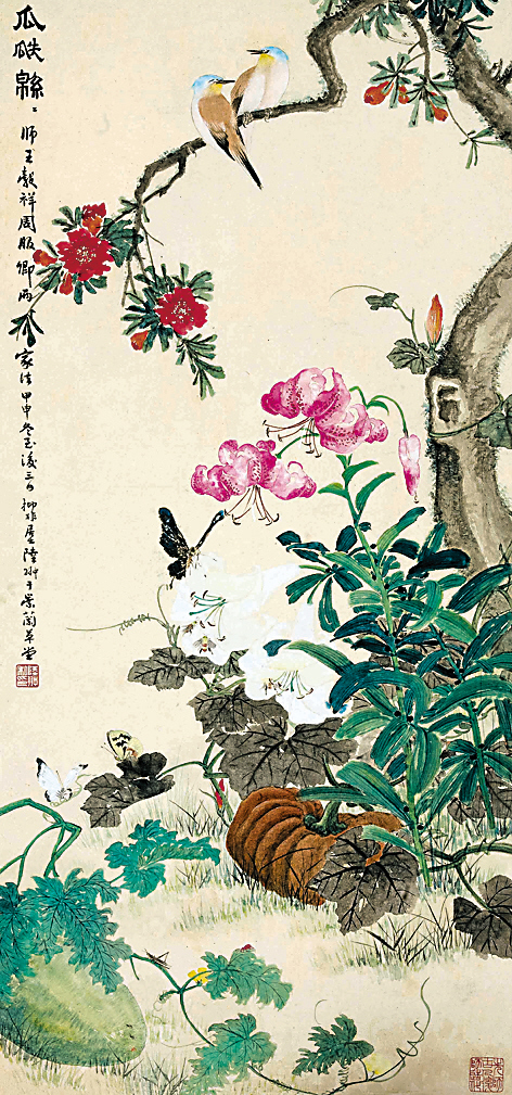 陆抑非 花鸟 设色纸本 立轴 尺寸:106×50cm 估价:80000—120000 出版:《陆抑非画集》