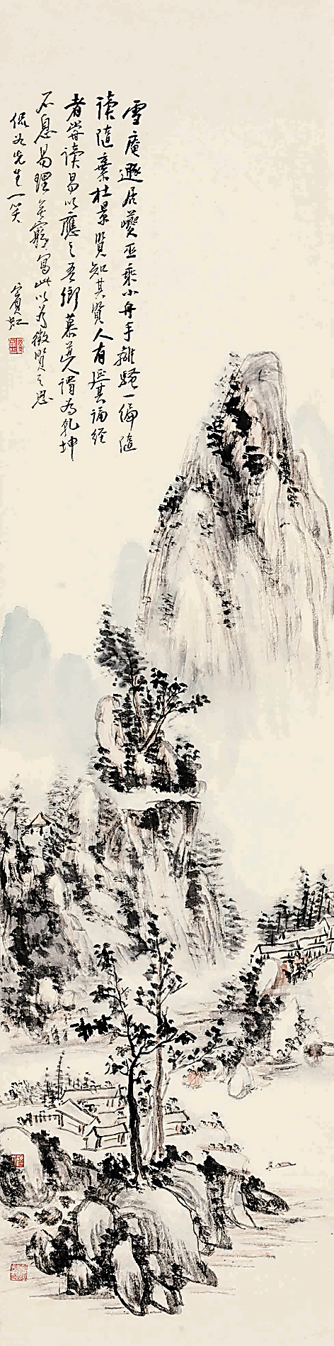 黄宾虹 溪山渔隐图 设色纸本 立轴 尺寸:128×32cm 估价:200000—350000