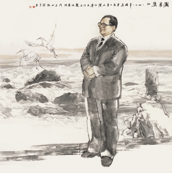 张葆冬 潮涌鹭江(江泽民同志视察厦门特区) 国画 180×180cm
