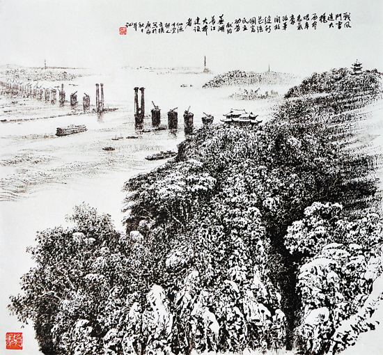 崔之模 战风斗雪造大桥 国画