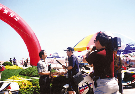 接受中央电视台记者现场采访