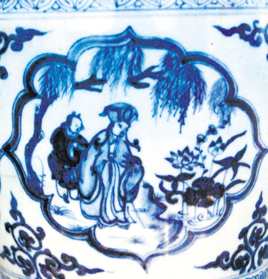湖北省博物馆藏元青花“四爱图”纹梅瓶局部