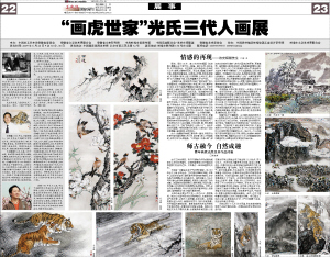 光相磐告诉我,他画虎不仅仅是为了形似,更重要是神似,他笔下的虎,并不是真虎的再现,而是把真虎的特点和性格典型化,使之更加“虎虎有生气”。只有把自己对人生的理解,对世间真、善、美的真情融化创作之中,才能“物我相忘,出神入化”。他丢开过去的画稿,不断地观察写生老虎,从虎的各个动态反复揣摩,直到熟练,运用自如。
