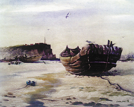 栾恭信(辽宁大连) 海风轻轻 水彩画