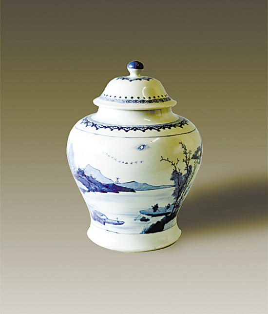 清 康熙 青花山水博古纹罐
