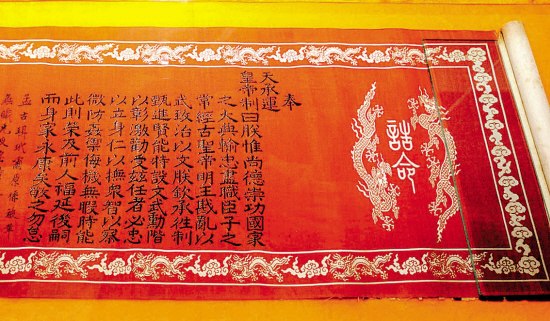 近日,山东省聊城市一处民间创办的“明清圣旨博物馆”正式对外开放。该馆馆藏明清时期的圣旨达132道之多,这次开馆展出圣旨55道,并配以明清时期的科举试卷、官场文书、字画匾牌等2000多件文物。图为馆内展出的一件清代圣旨。