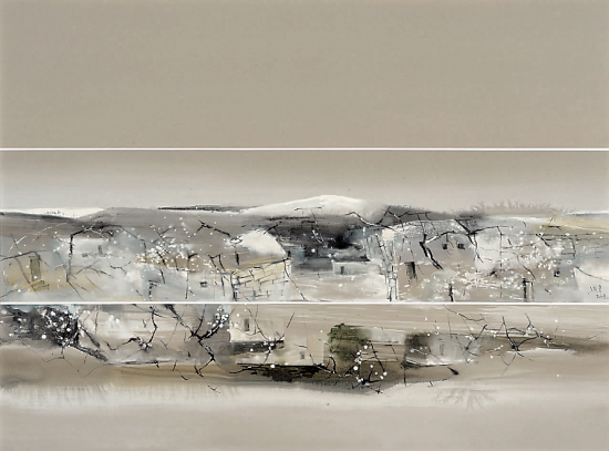 冯伟 静静的村落 水粉画