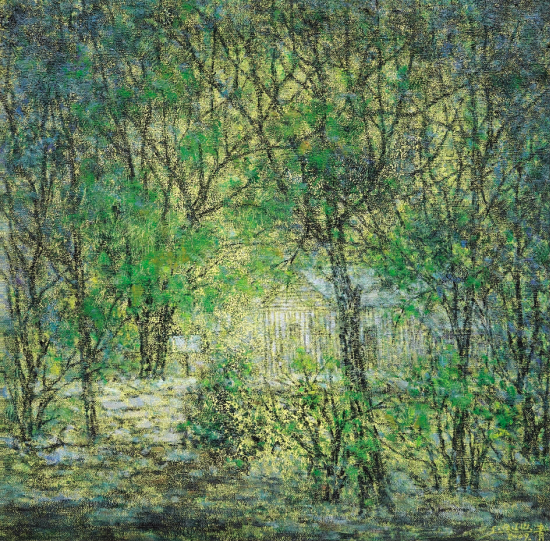 刘松青 林中小木屋 油画