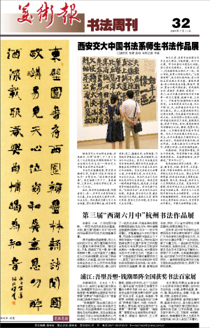 本报讯 小姚 六月的西子湖畔,一阵艺术凉风送来淡淡墨香,日前,第三届“西湖六月中”杭州书法作品展在市科技交流馆隆重开幕。