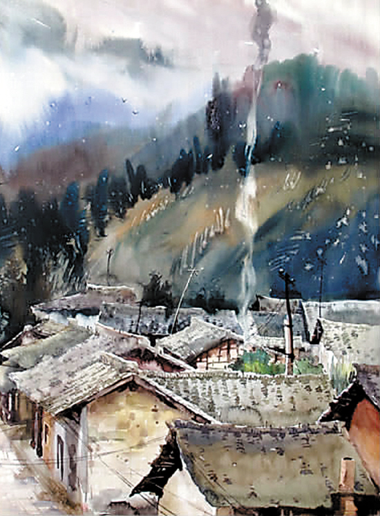 肖亚平(安徽安庆) 古村情 水彩画