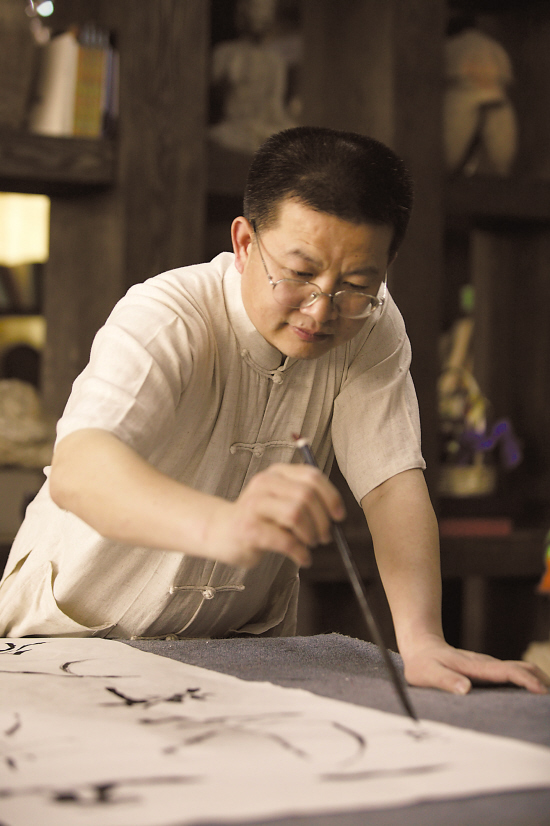 | 曾来德 四川省蓬溪县人,1956年生。现为国家一级美术师,中国国家画院艺委会委员、教学部主任、创作研究部副主任、书法篆刻室主任、书法及画家高研班导师,中国书法家协会理事,北京大学客座教授,《中国墨》杂志主编,荣宝斋画院特聘专家,北京来德艺术中心主持,中国书画收藏家协会学术委员。 上世纪八十年代初,拜著名书法家胡公石先生为师。研究今人的审美,融进时代精神并创造自己的书法风格,在国内外产生广泛影响。近年来先后在北京中国美术馆,上海美术馆,江苏、武汉、西安、成都、合肥、沈阳、郑州、深圳、山东等地美术馆博物馆举办“曾来德书画艺术”展览,引起社会各界的广泛关注。被书坛誉为“曾来德书法文化现象”、“书坛奇才”、“曾来德书法文本”。 目前已出版的有《曾来德书法作品集》、《曾来德现代书法作品集》、《曾来德画集》以及《写无尽书》、《曾来德谈艺录》、《书法的立场》等专著。 |