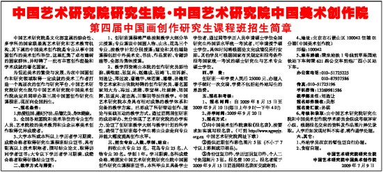 为促进美术的繁荣与发展,为在中国画创作和研究领域取得一定成就的美术工作者打造一个高层次的创作与研究平台,中国艺术研究院研究生院与中国艺术研究院中国美术创作院决定共同举办第三届中国画创作研究生课程班,现面向全国招生。