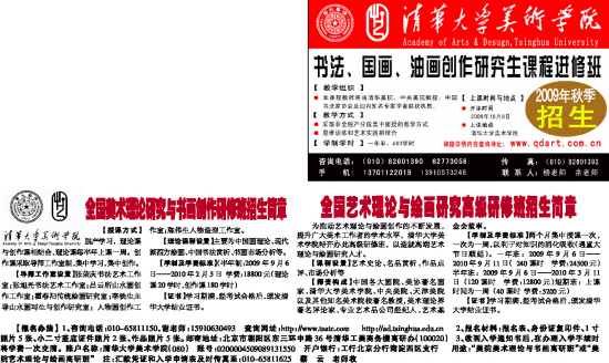【报名办法】 1、咨询电话:010-65811150,谢老师:15910630493 查询网址:http://www.tsatc.com http://ad.tsinghua.edu.cn 2、报名材料:报名表、身份证复印件、1寸照片5张、小二寸蓝底证件照片2张、作品照片5张。邮寄地址:北京市朝阳区东三环中路36号清华工美商务楼高研办(100020) 3、收到入学通知书后,在办理入学手续时将学费一次交清。账户名称:清华大学美术学院(080) 账号:0200004509089131550 开户银行:工行北京分行海淀西区支行 用途:“美院美术理论与书画高研班”或“美院艺术理论与绘画高研班” 注:汇款凭证和入学申请表及时传真至:010-65811625 蔡 云 老师收
