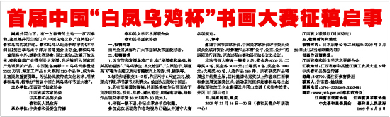 首届中国“白凤乌鸡杯”书画大赛征稿启事