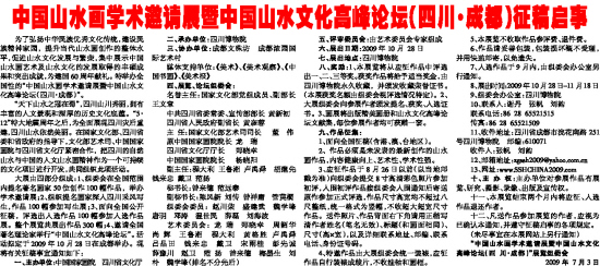 中国山水画学术邀请展暨中国山水文化高峰论坛(四川·成都)征稿启事
