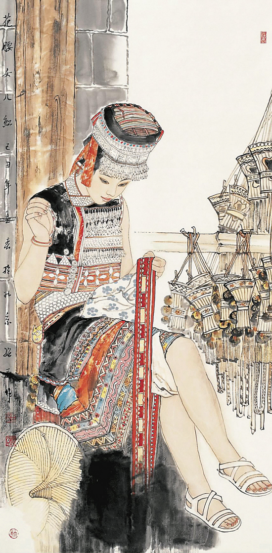 辛绍民 花腰女儿红 中国画