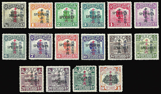 1916 北京一版帆船农获宫门图邮票加盖黑色