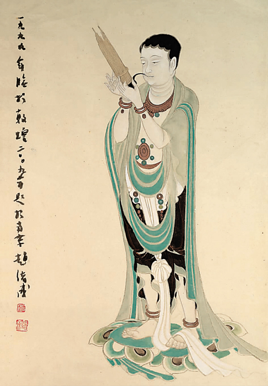 赵绪成 敦煌摹本 纸本·彩墨·镜芯 70×40cm