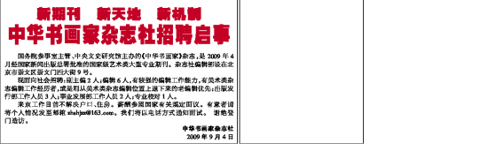 现面向社会招聘:副主编2人;编辑6人,有较强的编辑工作能力,有美术类杂志编辑工作经历者,或是刚从美术类杂志编辑位置上退下来的老编辑优先;出版发行部工作人员3人;事业发展部工作人员2人;专业校对1人。