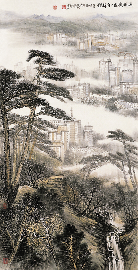 方本幼 远眺城区一角新貌 136×68cm
